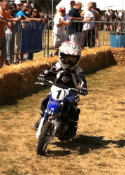 The first photo is of my 6 year-old grandson, Hunter, on HIS first ride. Yamaha was offering a “Learn-to-Ride” experience for kids from 2-12 at the MotoGP races at Indianapolis. His “Opa”, Pat, another old-school motorcycle enthusiast and I just looked at each other and KNEW it HAD to be. Hunter HAD to learn to ride THAT day. And ride he did. He bounced off the hay bales once, popped up, and never looked back.