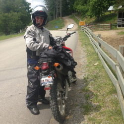 For the past week, Jenny and I have been exploring the Great Smokey Mountains on dual-purpose motorcycles. When my son, Terry, was young he and I did a lot of this kind of riding. The bikes are smallish, the challenges different than those that you find on the roads, and the satisfaction is immense. While Jenny is an accomplished road motorcyclist, this was her first real exposure to dual purpose ridingpc_dan